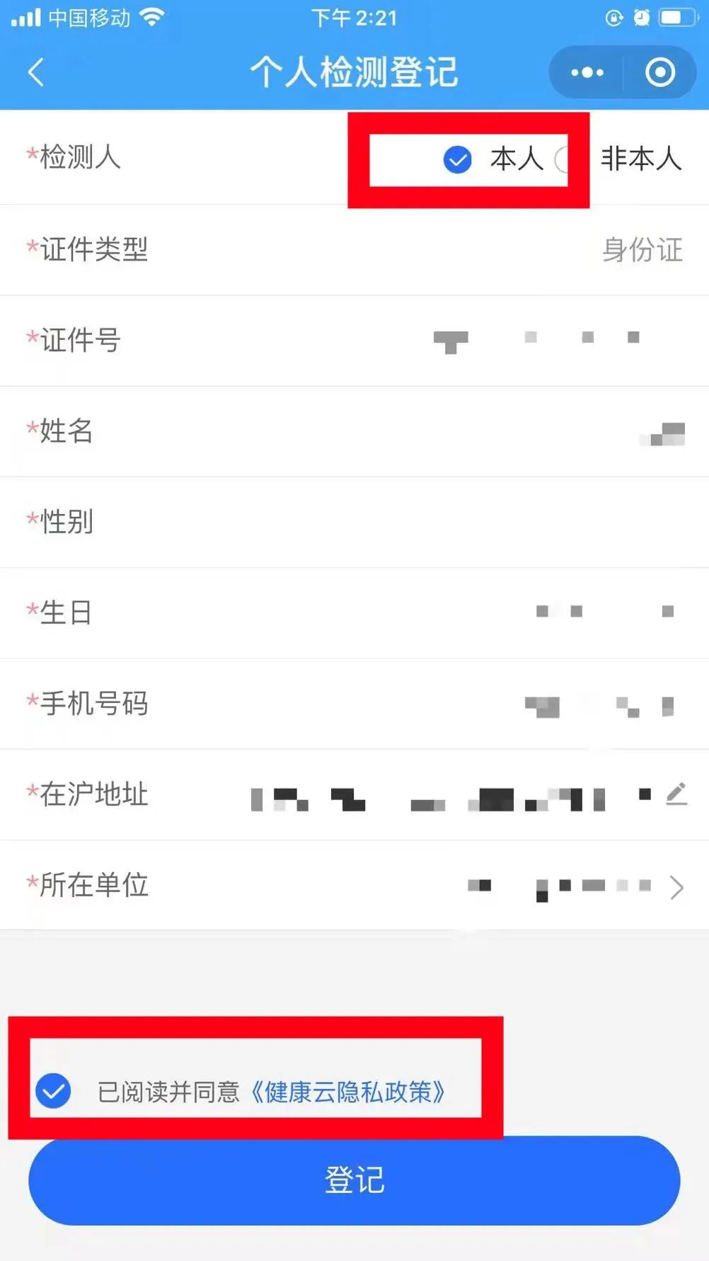 3如為家中老人、孩子預約登記,請選擇“非本人”,