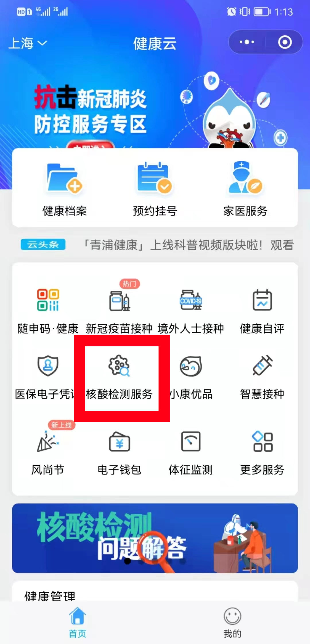 1打開微信或支付寶“健康云”。